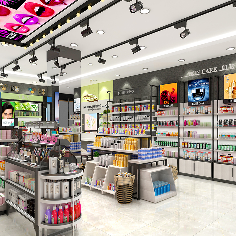 -> 美妝店貨架精品現(xiàn)代護膚陳列柜商場彩妝專柜面膜展示柜雙面貨架子