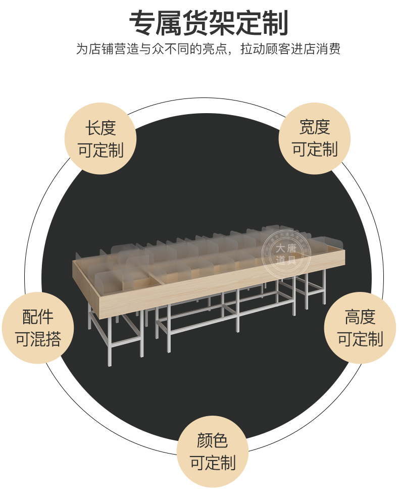 產品描述:時尚鋼木零食架,給顧客帶來輕奢購物體驗,工廠直銷,質量保證。