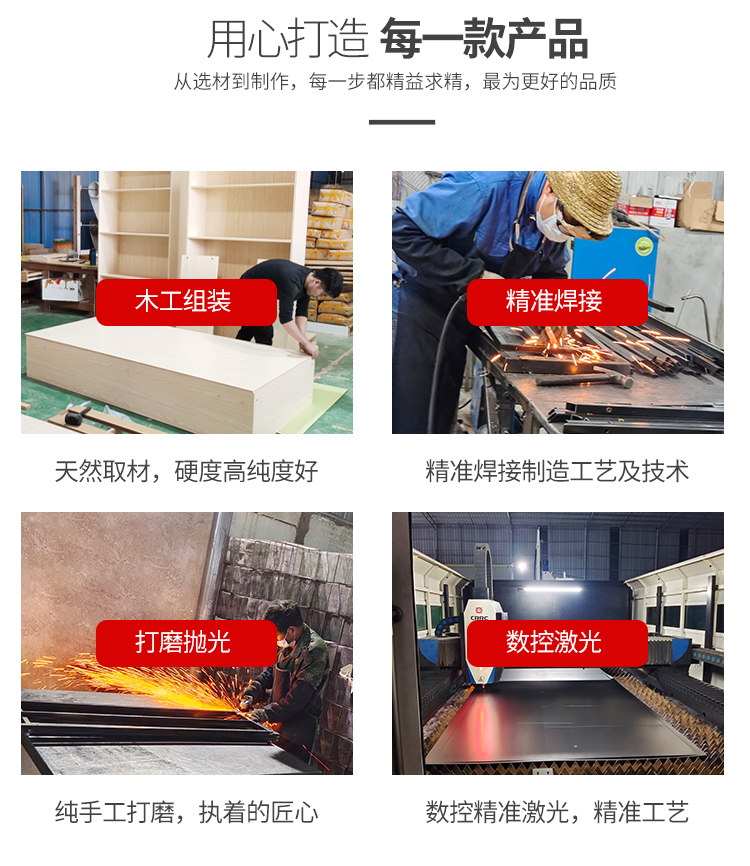 擁有CNC加工設備、噴塑流水線、無塵噴漆房,給予產品精益求精的品質保證,嚴格把控材料品質,所用材料經過6道工序嚴格檢驗,確保貨架安全穩固有保障