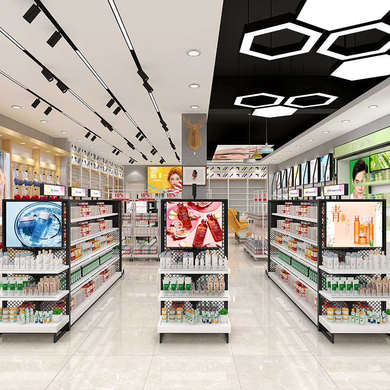 揭陽輕奢彩妝展示柜化妝品展示架精品面膜香水陳列架專柜品牌雙面貨架