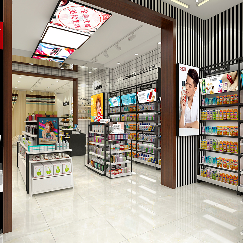 哈爾濱美妝店貨架精品現代護膚陳列柜商場彩妝專柜面膜展示柜雙面貨架子