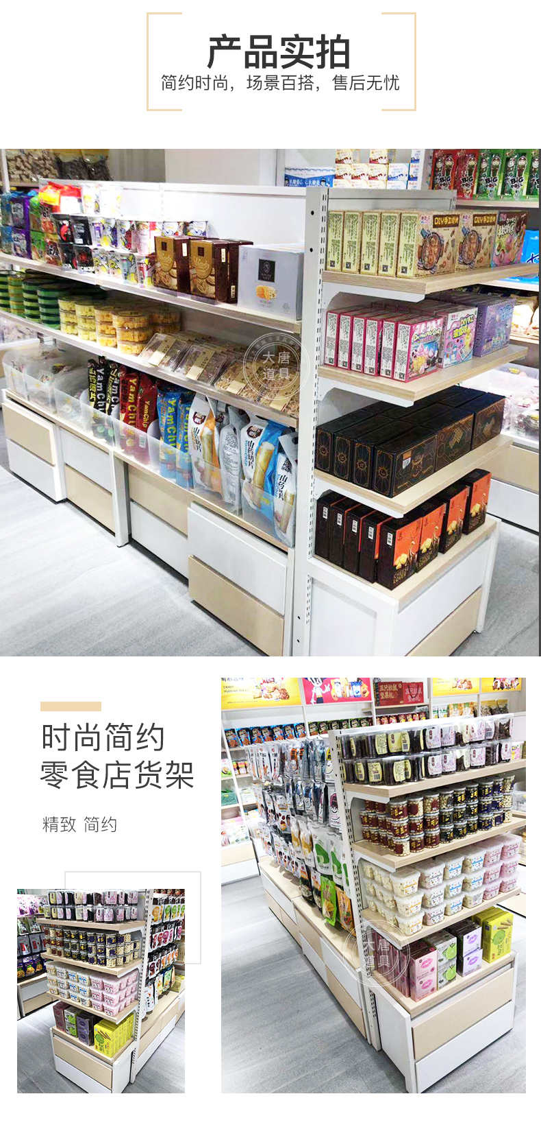 產品描述:時尚鋼木零食架,給顧客帶來輕奢購物體驗,工廠直銷,質量保證。